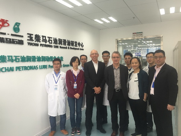 11月13日,馬石油潤(rùn)滑油首席運(yùn)營(yíng)官(COO)Eric Holthusen及全球技術(shù)總監(jiān)Dr. Andrew Holmes到玉柴馬石油潤(rùn)滑油南寧研發(fā)中心,了解合資公司新研發(fā)中心項(xiàng)目的建設(shè)情況,及今年玉柴馬石油潤(rùn)滑油研發(fā)項(xiàng)目的進(jìn)展。
