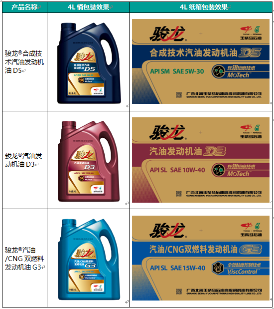 本次推出的駿龍系列汽油發(fā)動(dòng)機(jī)油包括: