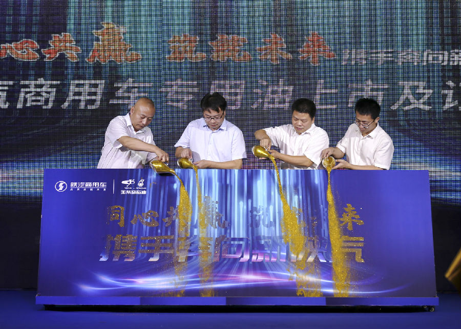 玉柴馬石油潤(rùn)滑油董事長(zhǎng)謝裕強(qiáng)先生、副總經(jīng)理蘇芃先生與陜汽商用車(chē)財(cái)務(wù)總監(jiān)張魯先生、服務(wù)管理部副部長(zhǎng)李偉剛先生,共同主持揭幕儀式。