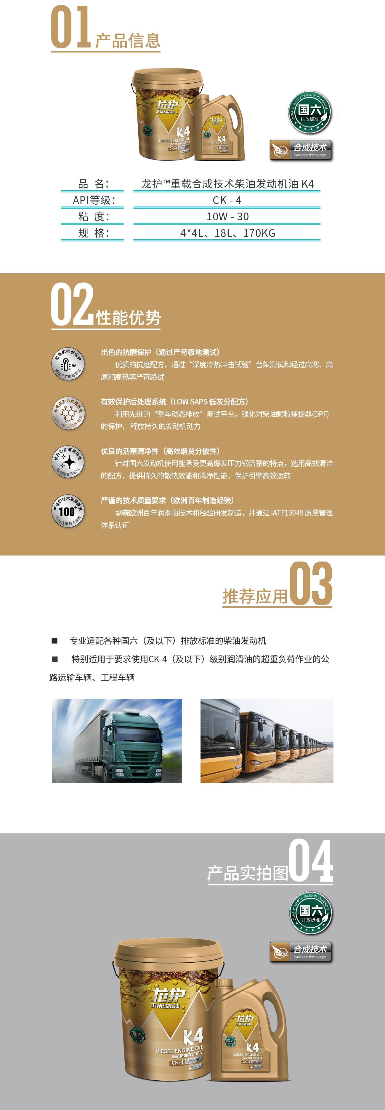 ? 專業(yè)適配各種國六(及以下)排放標(biāo)準(zhǔn)的柴油發(fā)動(dòng)機(jī) ? 特別適用于要求使用CK-4(及以下)級別潤滑油的超重負(fù)荷作業(yè)的公路運(yùn)輸車輛、工程車輛