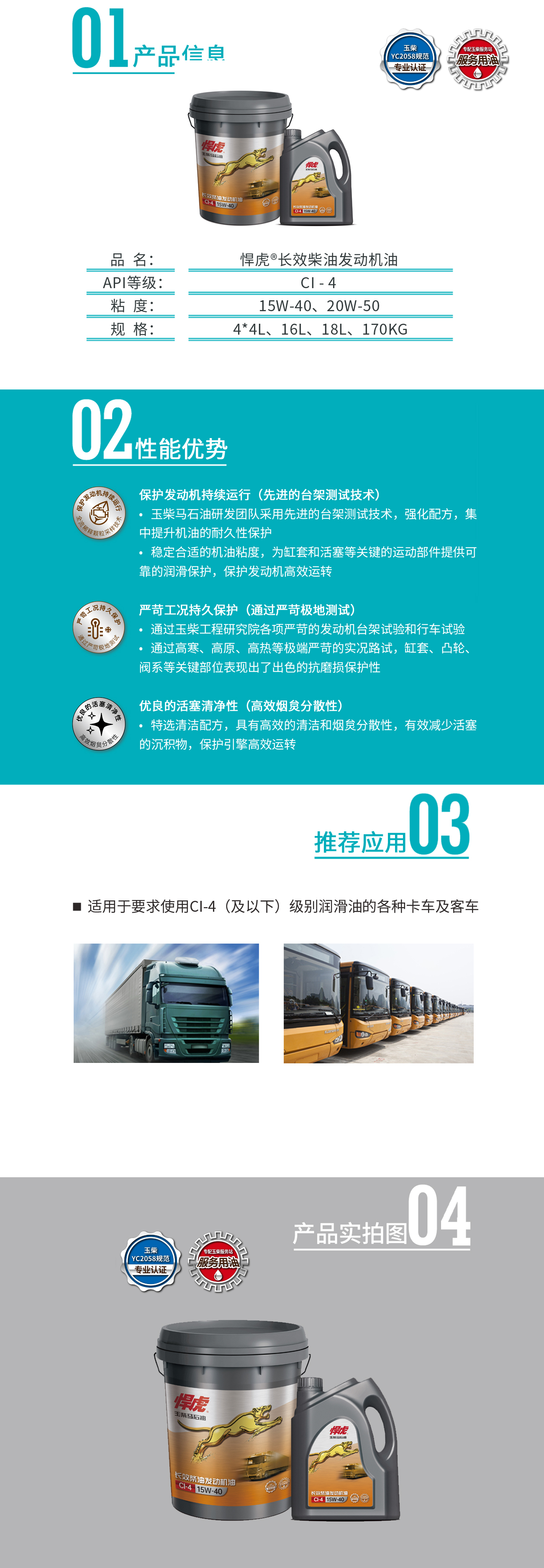 ? 適用于要求使用CI-4(及以下)級(jí)別潤(rùn)滑油的各種卡車及客車